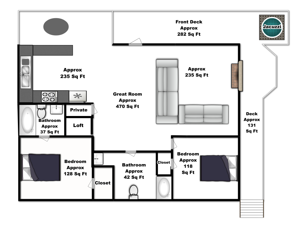 Mouse Over or Touch on Floor Plan To Display Cabin Pictures